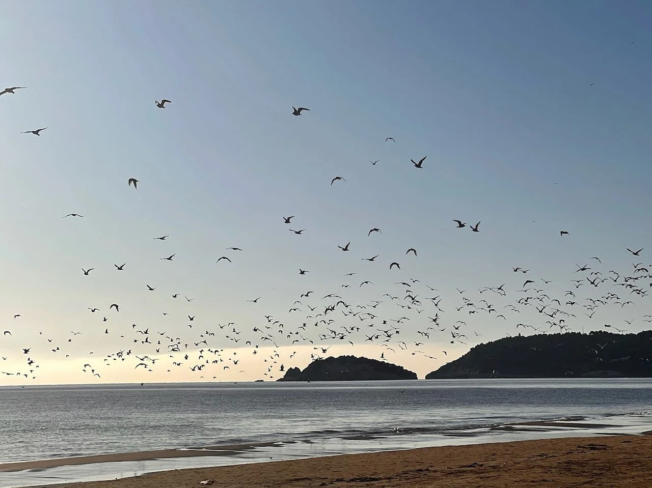 Du côté Sud de la plage, balayée par les vols d’oiseaux, et au sable très fin, des petites criques et grottes facilement accessibles. Nous sommes touchés par la beauté de la roche.