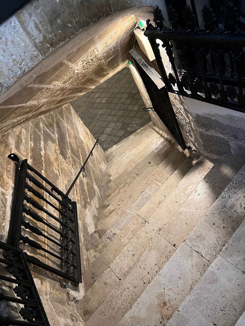 La cathédrale en pierre blanche a une sobriété qui tranche avec les églises baroques très chargées. Nous grimpons en haut de la tour pour contempler la vue et mériter notre petite bière en bas