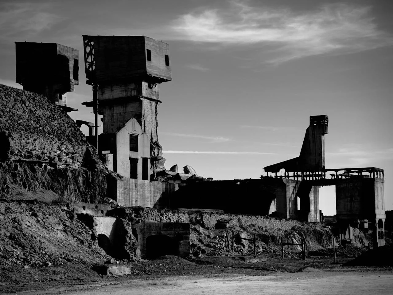 Les ruines des bâtiments et des foreuses sont merveilleusement photogéniques dans la lumière du soir.