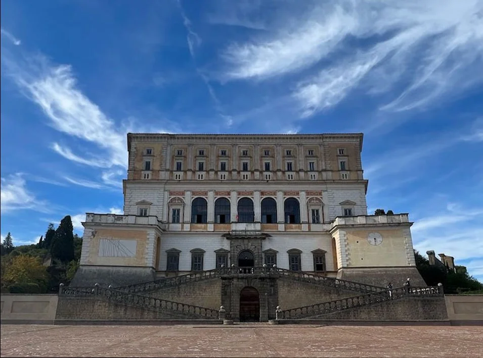 Nous visitons la villa Farnese (merci Martial), à ne pas confondre avec son palais romain homonyme. Magnifique! Une construction en pentagone, au coeur duquel une cour circulaire à colonnades abrite des peintures originales, presques naïves parfois, et bien préservées.
