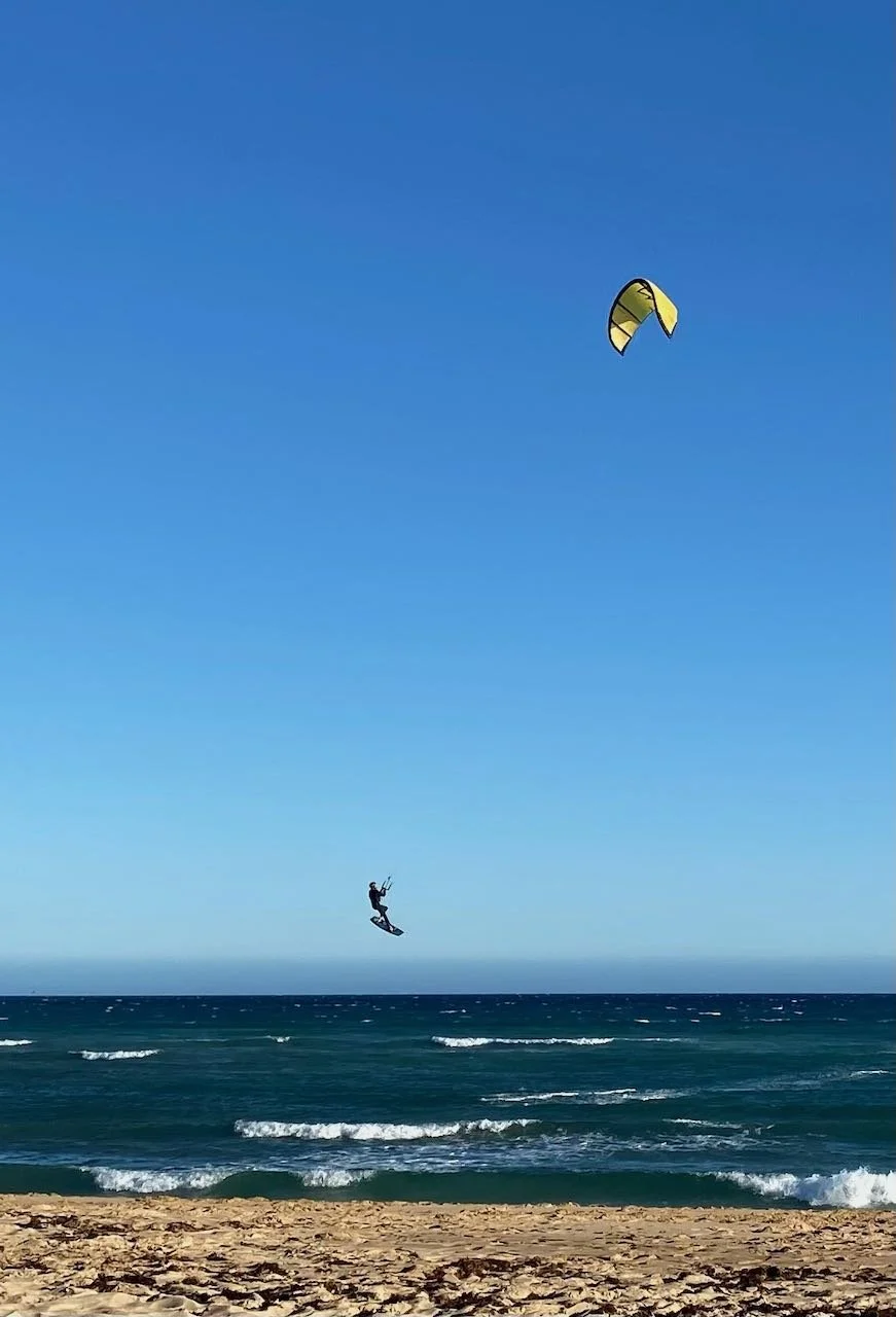 Les kite surfers font des bonds impressionnants, d’une quinzaine de mètres au dessus des flots.