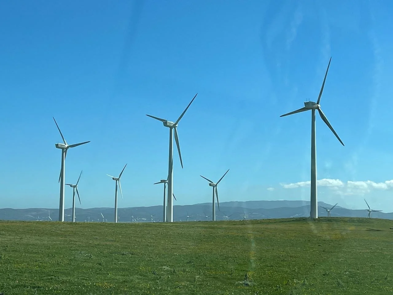 Sur la route de Tarifa, on traverse la plus grande ferme éolienne qu’on est jamais vue, il y en a au moins 200.