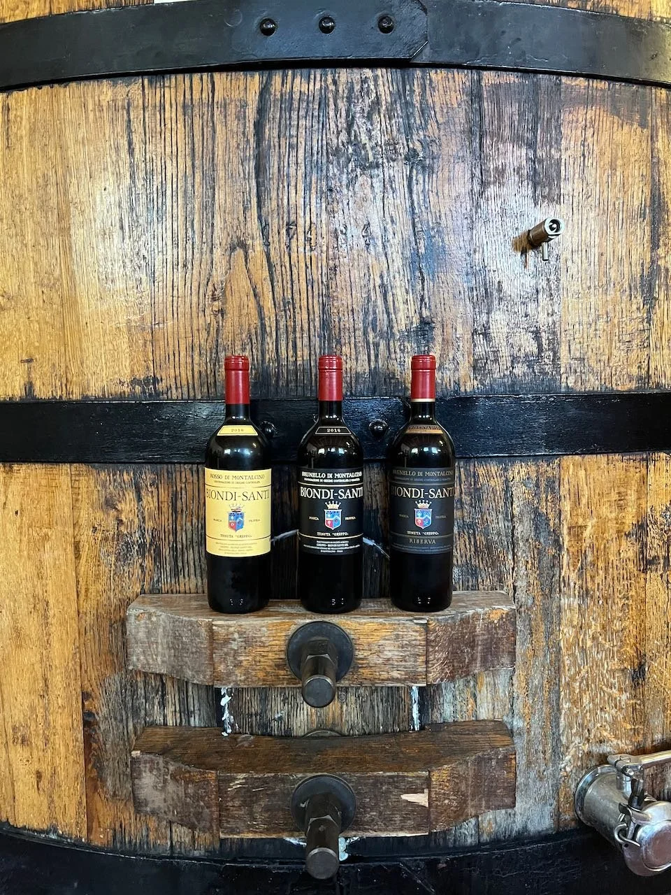 Lundi, grâce à notre ami Michael que nous remercions ici, nous avons le privilège d’une visite personnalisée de Biondi Santi, le plus célèbre vignoble de l’appellation Brunello di Montalcino. Notre hôtesse Sabine nous raconte l’historique du domaine, de la famille, des travaux sur les plants, sur les vignes, sur les sols : c’est passionnant. Nous visitons aussi la cave où sont stockés les crus les plus mythiques, les Reserva, depuis 1891.