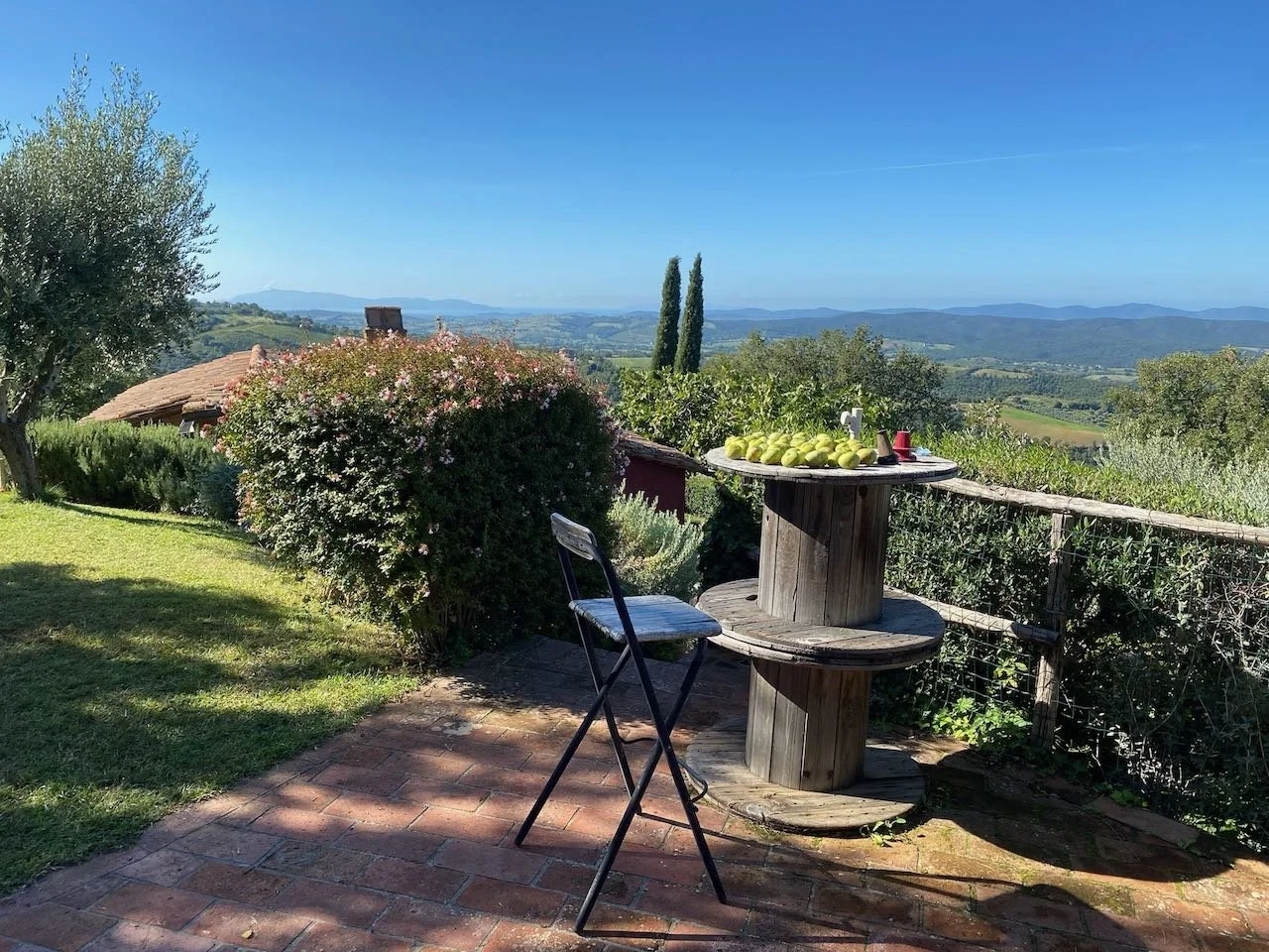 La vue de la terrasse est à couper le souffle : les collines dans la brume, la mer, les îles - jusqu’à la Corse par temps clair, paraît-il.