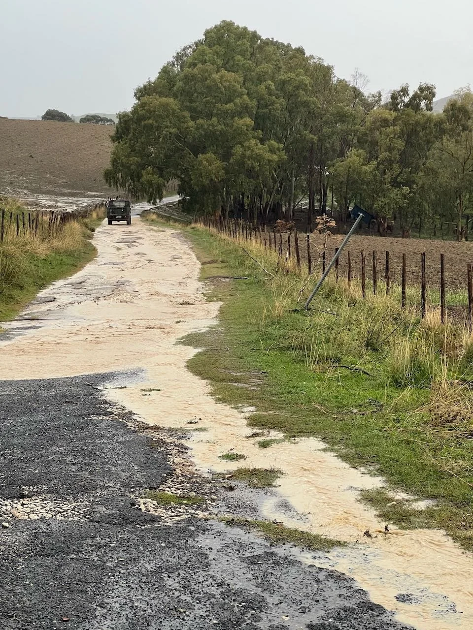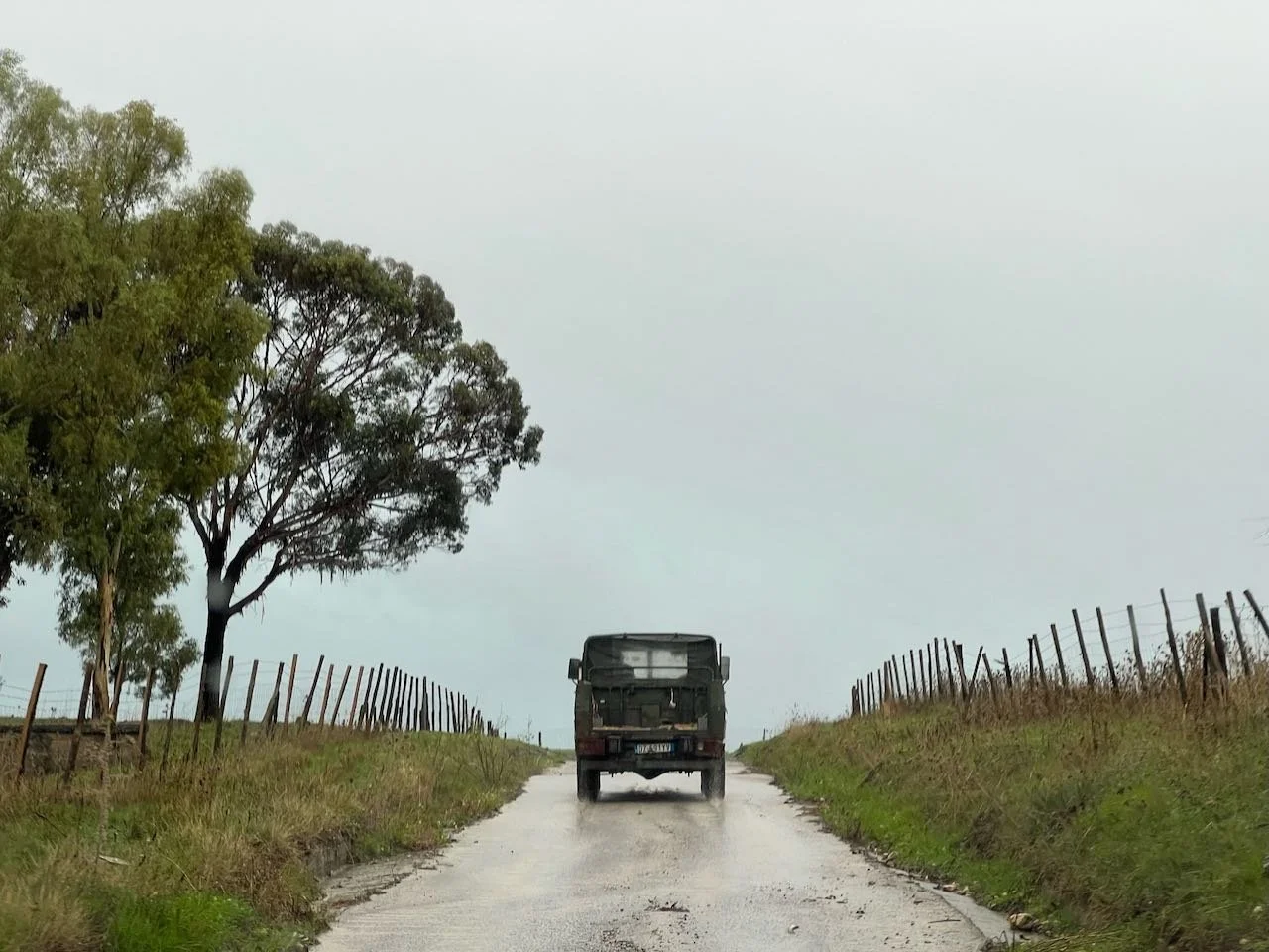 Mais l’absence de réseau pour chercher une alternative et une optimiste flemme forcent la décision. Passé le premier kilomètre, la route devient plus cabossée et la pluie s’intensifie. Nous arrivons à un carrefour au moment où l’orage éclate dans toute sa force. Nous sommes à un croisement, entre deux routes approximatives, et Barbara décide de profiter de la présence de bitume pour faire halte et réfléchir aux options.