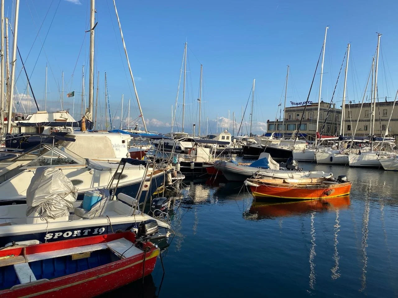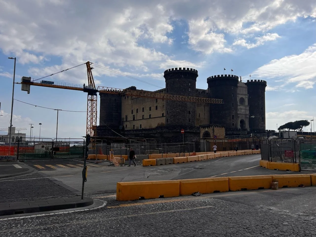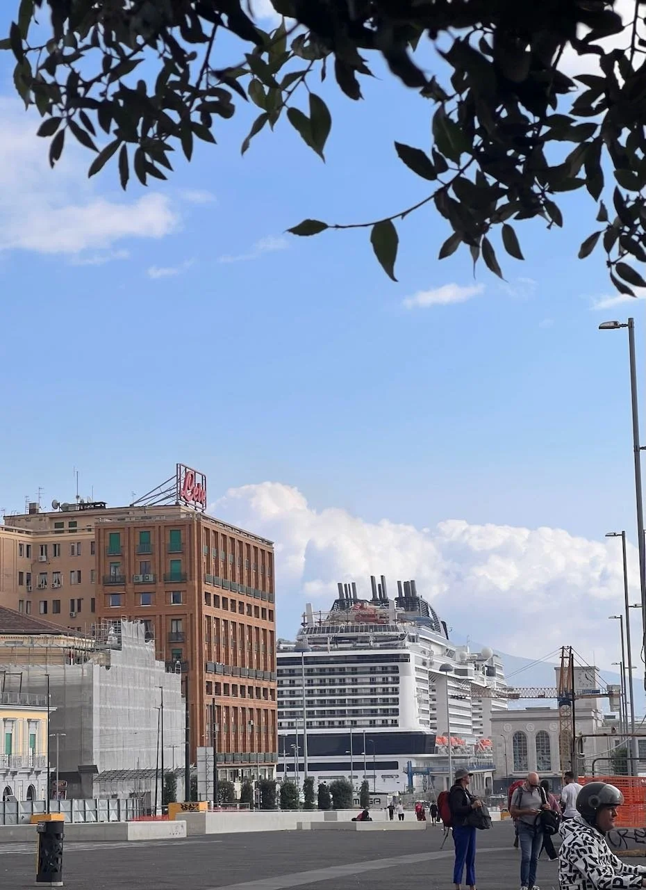 A gauche de Castel Nuovo, c’est le port des ferries et des paquebots - l’un d’entre eux est tellement haut qu’il dépasse en taille les plus hauts immeubles attenants.