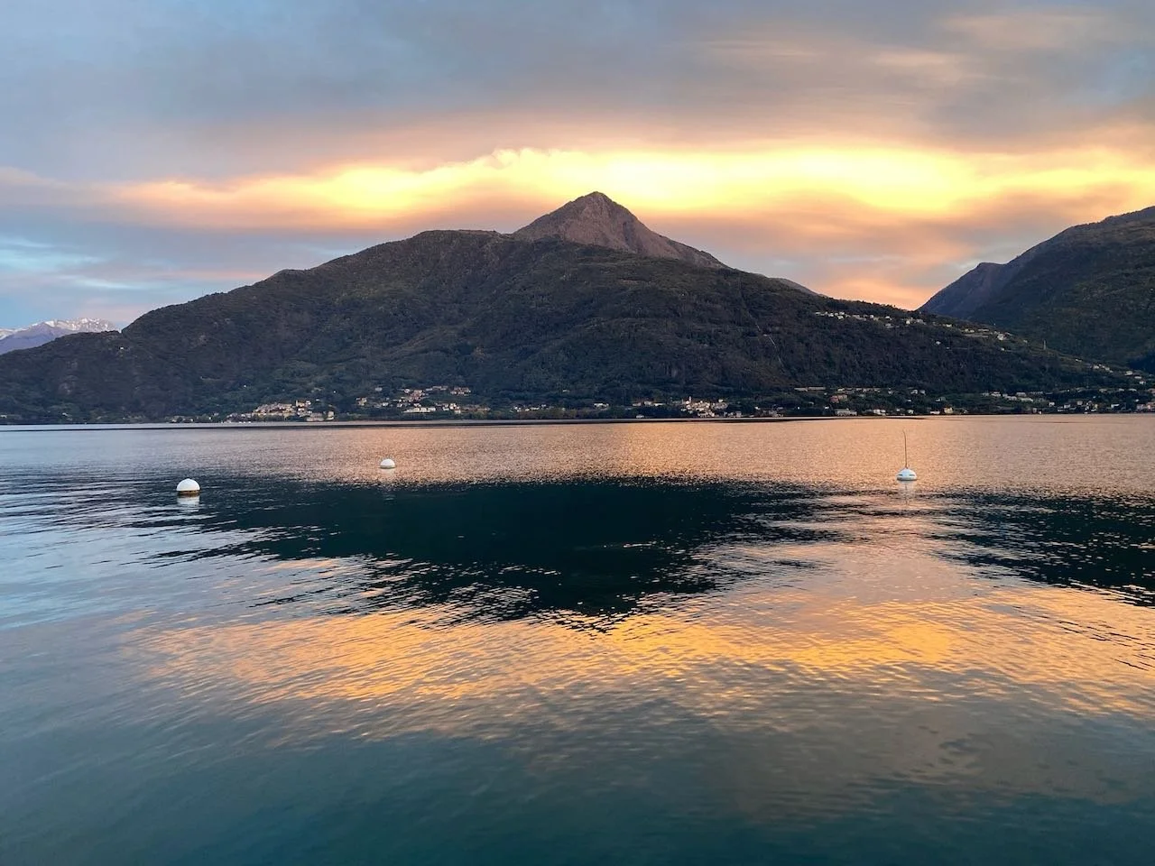 On décide de quitter Milan assez tôt pour y attraper le coucher du soleil. Après une dizaine de kilomètres (le lac en fait plus de cinquante), les embouteillages se fluidifient et on parcours la petite route côtière parsemée de petits villages et de pontons à bateaux. C’est beau, calme, propet, on se sent plus en Suisse qu’en Italie.